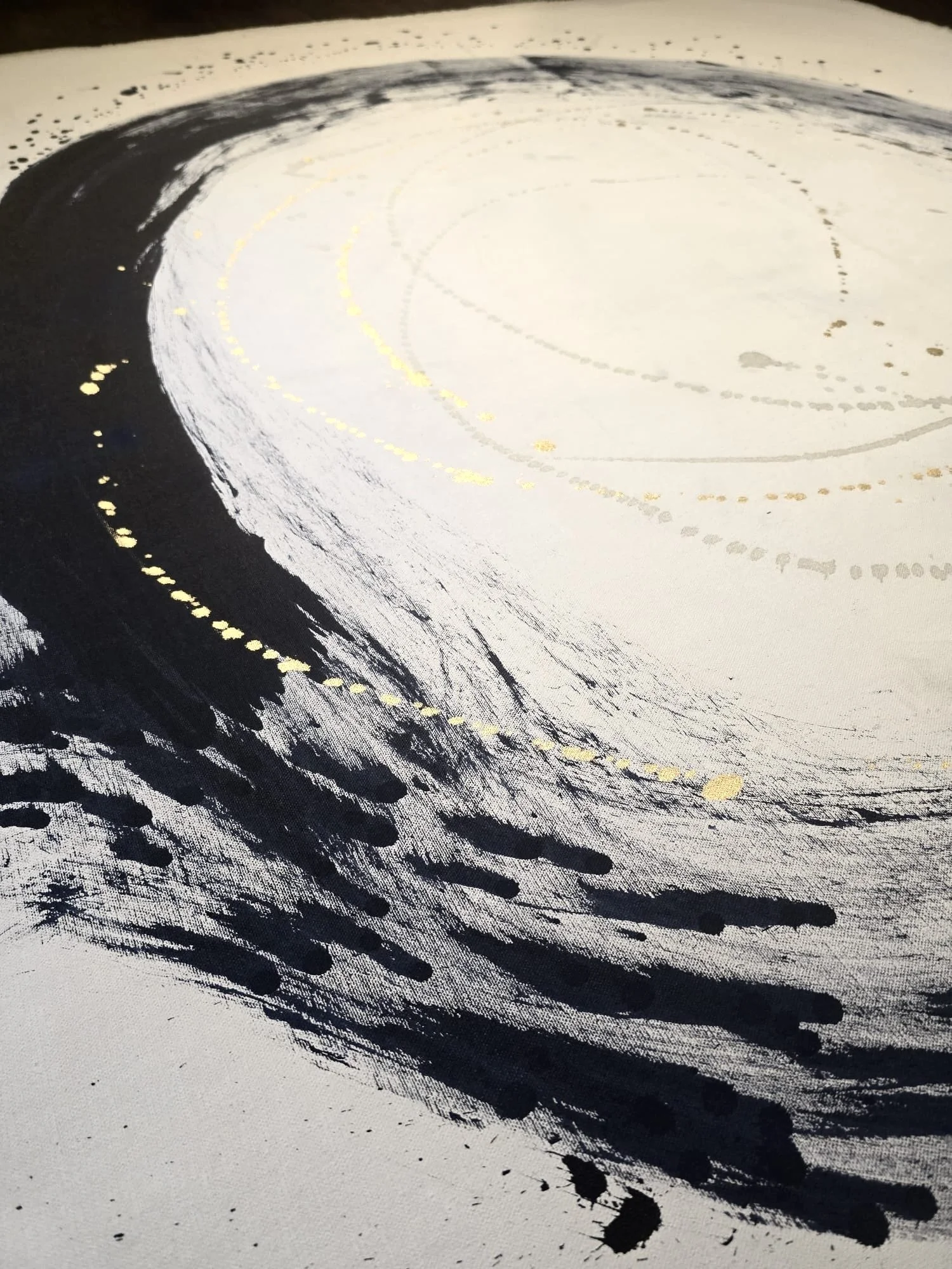 ⭕️ Enso is classical Zen symbol and part the artist’s practice since her first trip to Japan in 2018. Painted in a traditional Japanese manner; in one masterstroke and no corrections afterwards. The practice gives form to the concentrated flow of the energy in the moment, making invisible synchronicities visible. Symbolically, the iconic Zen symbol represents the circle of life, unity and connection to all as well as duality of our existence; empty yet full, infinite yet complete.